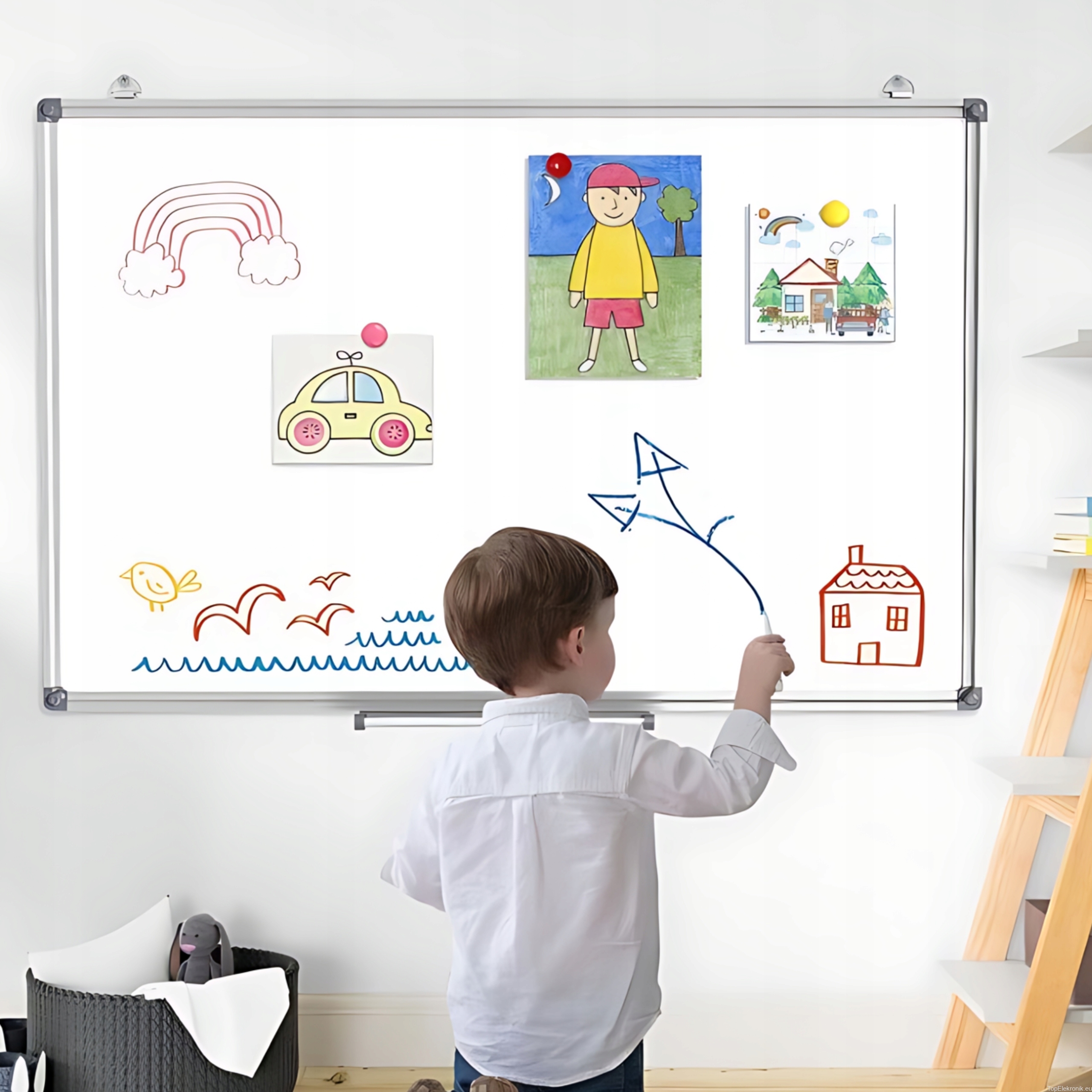 Powierzchnia tablicy jest łatwa w czyszczeniu. Możesz na niej pisać markerami suchościeralnymi, a także przyczepiać przy pomocy magnesów notatki, zdjęcia czy dokumenty.