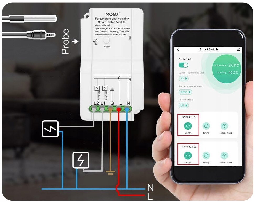 Urządzenie może pełnić funkcję niezależnego termostatu, działającego nawet, gdy nie ma dostępu do sieci internet. W zależności od zadanej wilgotności i temperatury możemy kontrolować stan przekaźników wbudowanych w urządzenie i wykorzystać moduł do utrzymania zadanej wilgotności i temperatury w pomieszczeniu. Urządzenie kontrolowane jest za pomocą darmowej aplikacji Tuya, Smart Life.