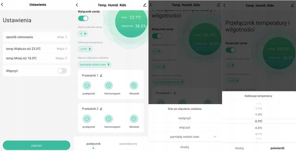 Równocześnie urządzenie będzie monitorować wilgotność w pomieszczeniu i drugi kanał uruchomi nawilżacz powietrza jeśli powietrze stanie się zbyt suche.