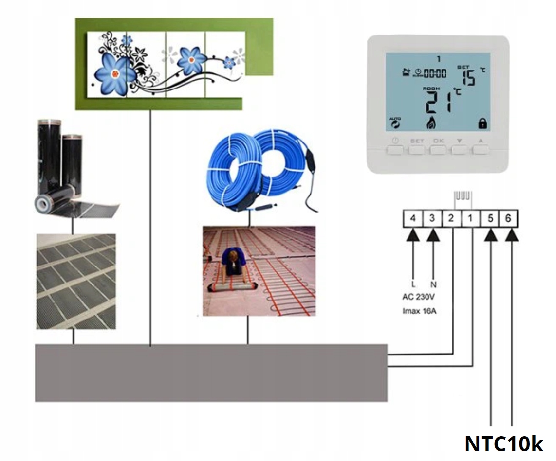 ✅ Możliwość podłączenia czujnika podłogowego NTC10K (brak w zestawie)