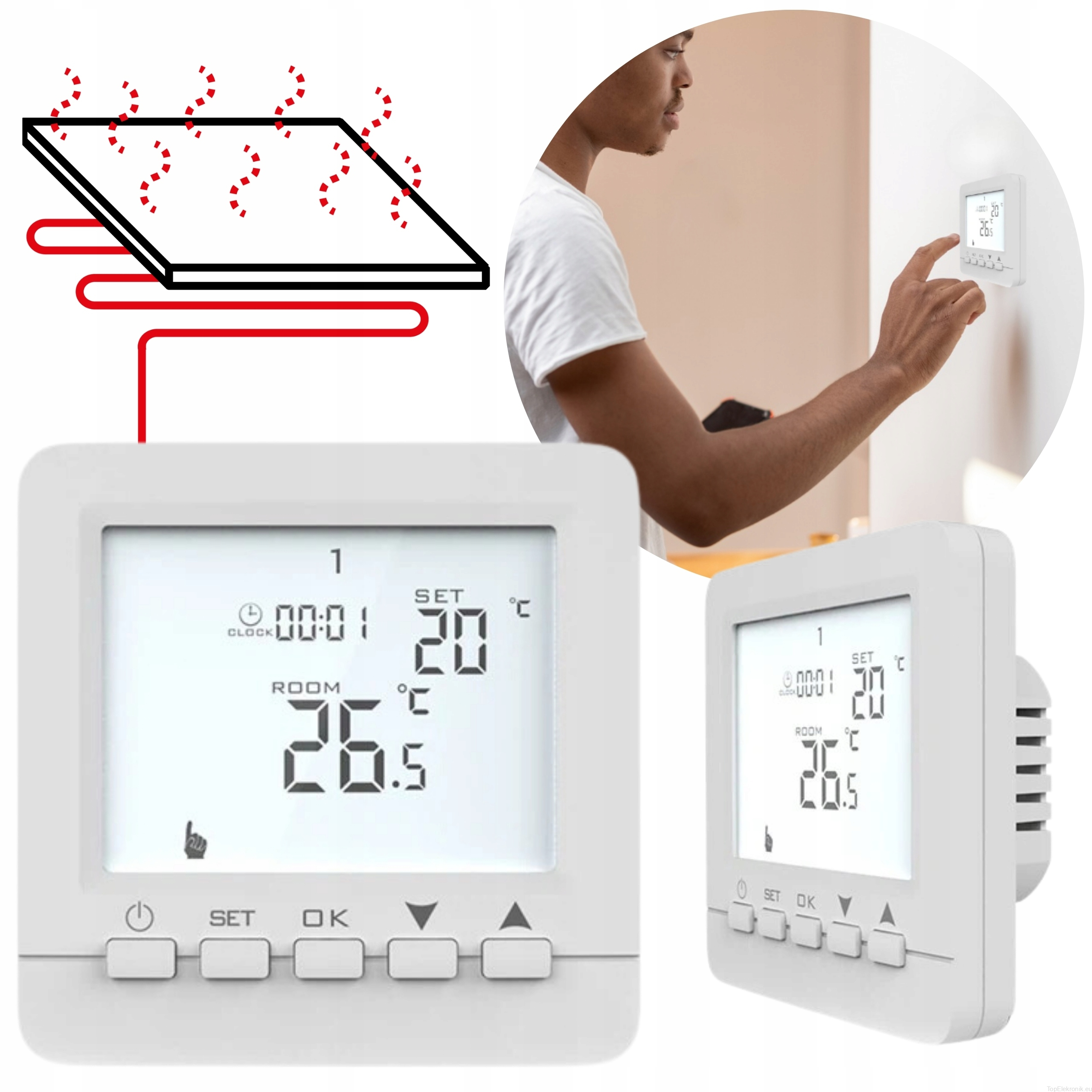 ⏩ Uniwersalny podstawowy Termostat ścienny do maty elektrycznej , pompy obiegowej, elektrozaworu...