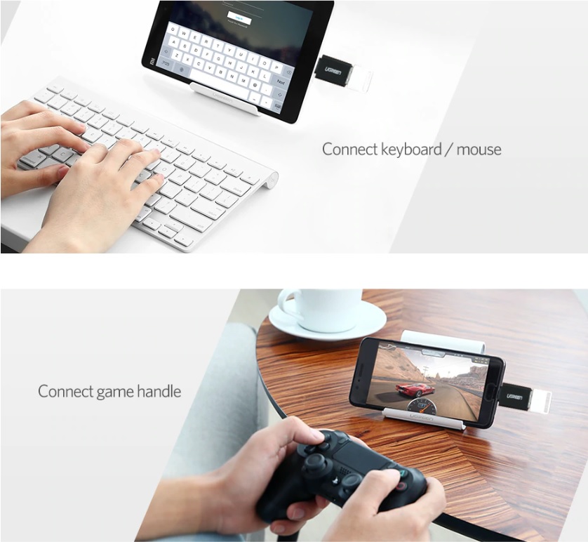 Adapter umożliwia podłączenie do smartfonów z portem USB-C kabli, czytników kart microSD i dysków wymiennych ze złączem USB, a także pendrive'ów za pomocą kabla OTG ze złączem USB.