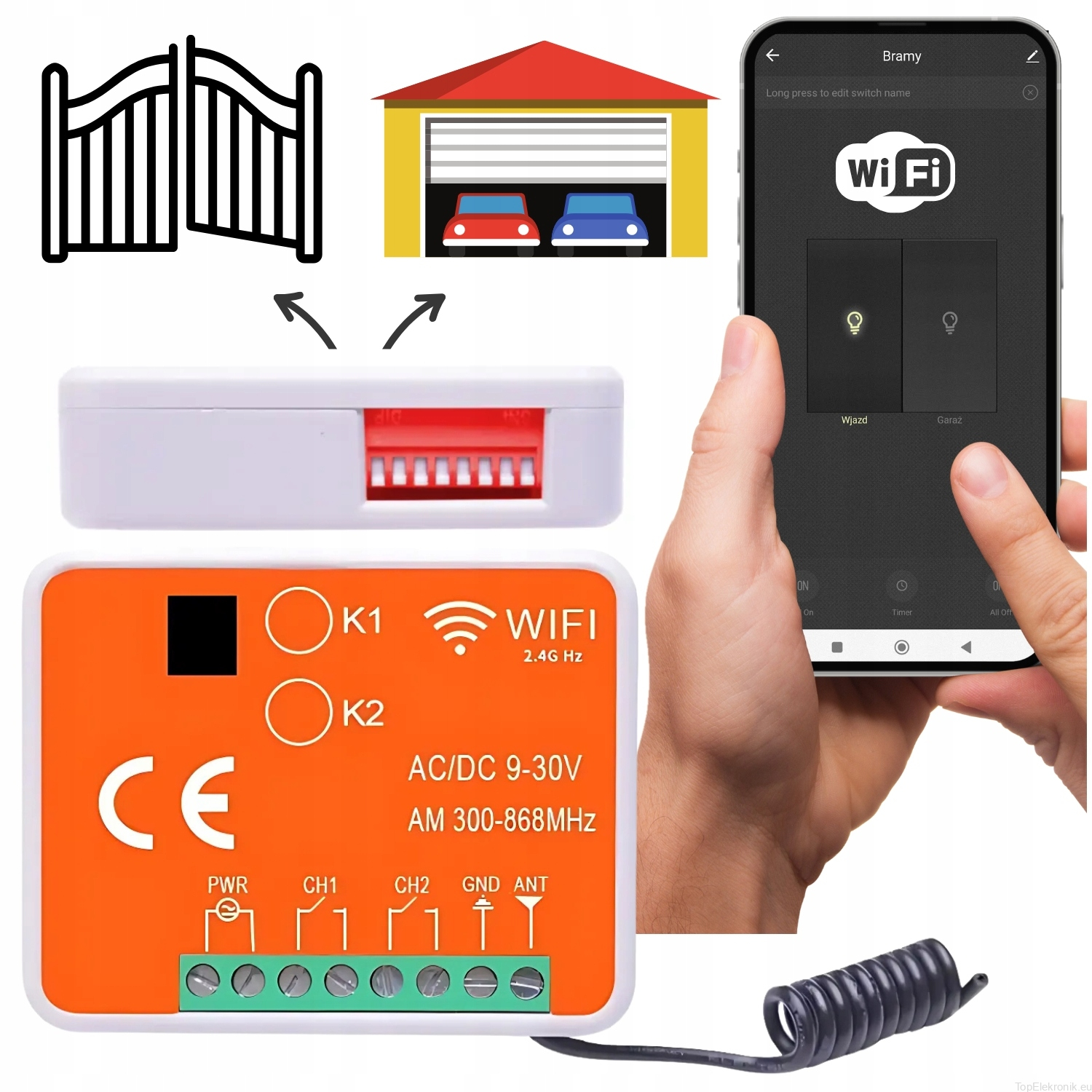 ⏩ Odbiornik współpracuje z wieloma pilotami najpopularniejszych marek z w paśmie 300-868Mhz