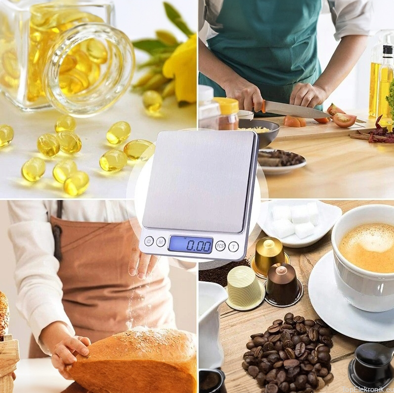 Waga posiada dwie tacki, które można wykorzystać zarówno jako pojemniki do ważenia sypkich jak i ciekłych produktów.