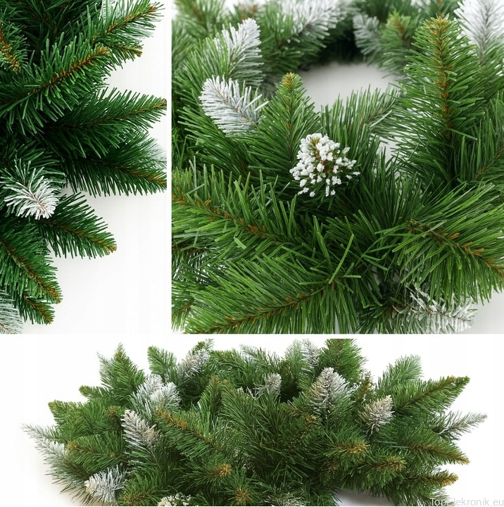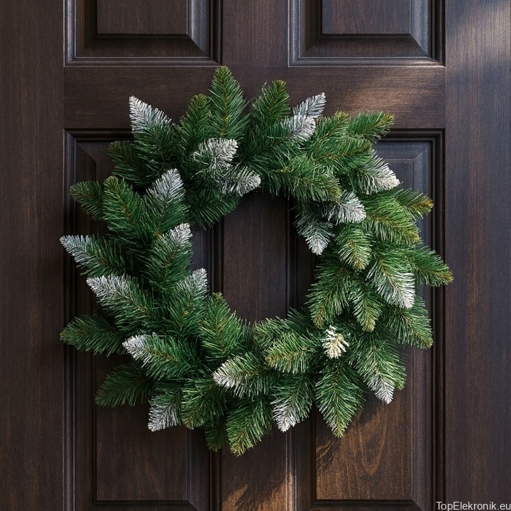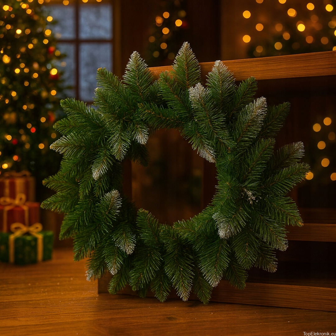 Nadaj drzwiom i wnętrzu elegancki, zimowy charakter. Gęsty wianek z gałązek świerku wygląda jak żywy, a subtelnie „oszronione” końcówki igieł dodają mu świeżości i świątecznego klimatu. Idealny na drzwi, ścianę, kominek czy stół jako baza pod stroik.
