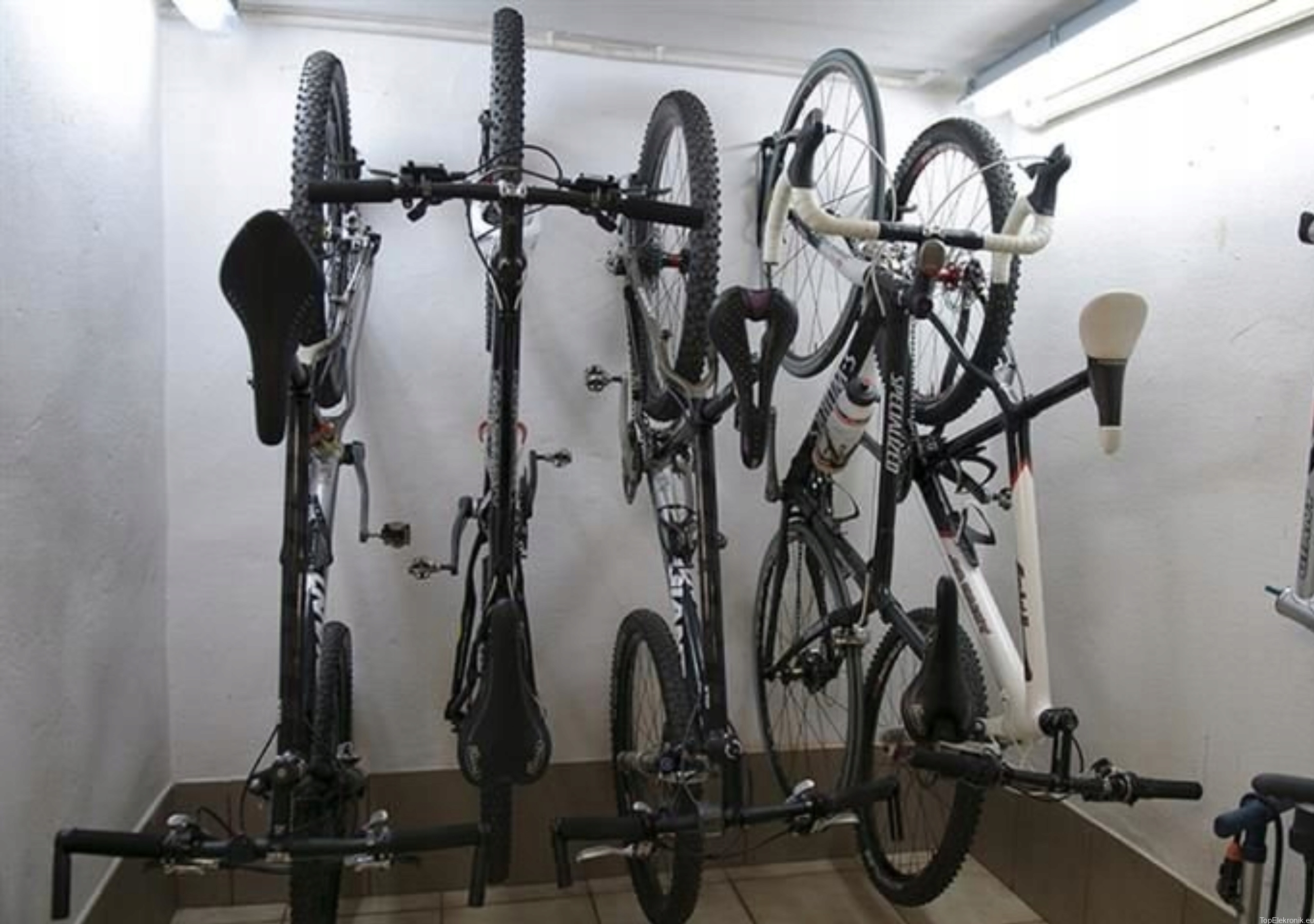 Wieszak montowany na ścianie pozwala zawiesić rower w pozycji pionowej, dzięki czemu nie zajmuje on przestrzeni na podłodze.