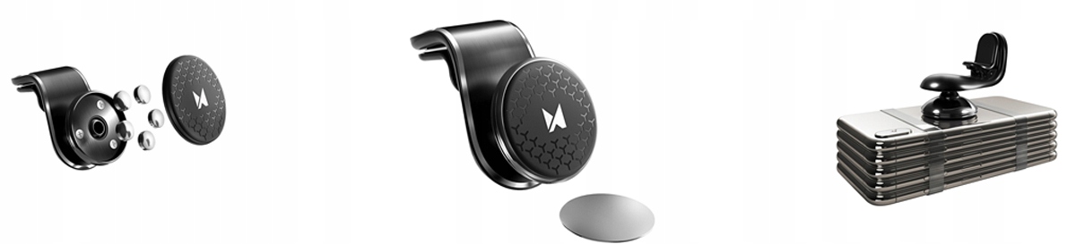 Jest wyposażony w 5 silnych magnesów, które są gwarancją stabilności i bezpieczeństwa telefonu. Z kolei dzięki swoim niewielkim rozmiarom uchwyt bez problemu zmieści się np. do schowka. Do tego posiada duże możliwości regulacji 360 stopni i metalową płytkę w zestawie.
