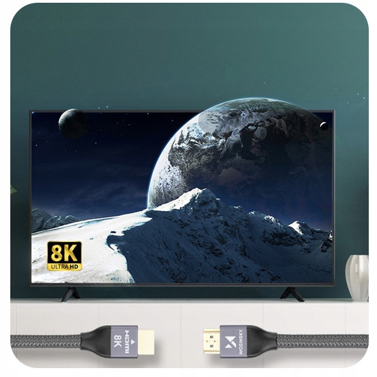 Rozdzielczość 7680 px x 4320 px jest czterokrotnie bardziej wyraźna niż 4K, a jakość obrazu jest bardziej wysublimowana. W najwyższej rozdzielczości kabel pozwala na odświeżanie na poziomie 60 Hz, przy 4K wzrasta do 120 Hz, a w optymalnym ustawieniu 2K osiąga nawet 144 Hz.