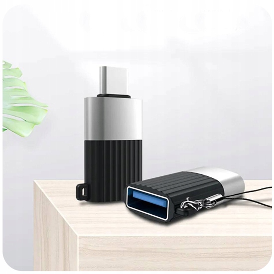 Przejściówka z gniazda USB OTG na gniazdo USB typ C Umożliwia ładowanie i transmisję danych. Kompatybilna ze smartfonami, tabletami, laptopami itp. wyposażonymi w złącze USB typ C