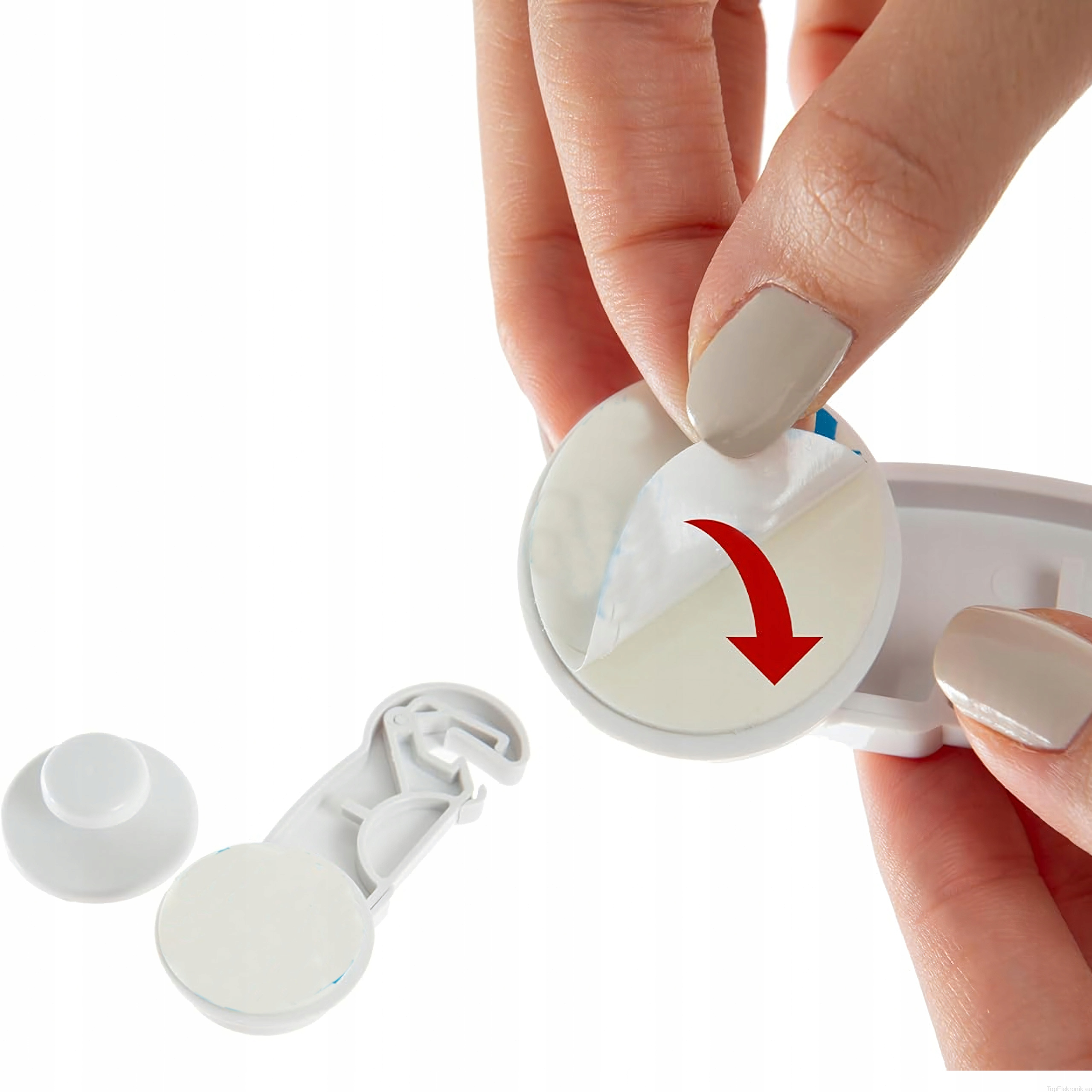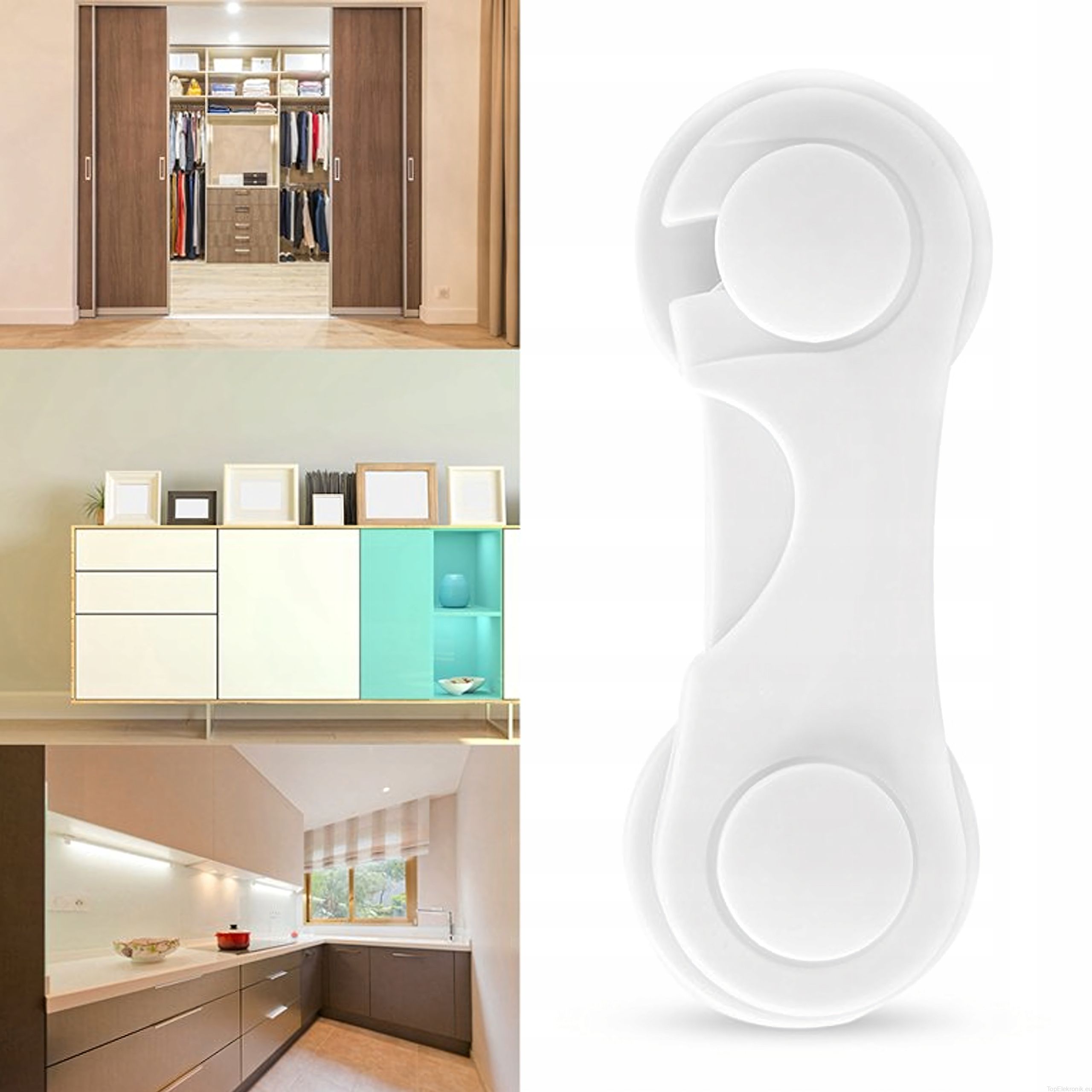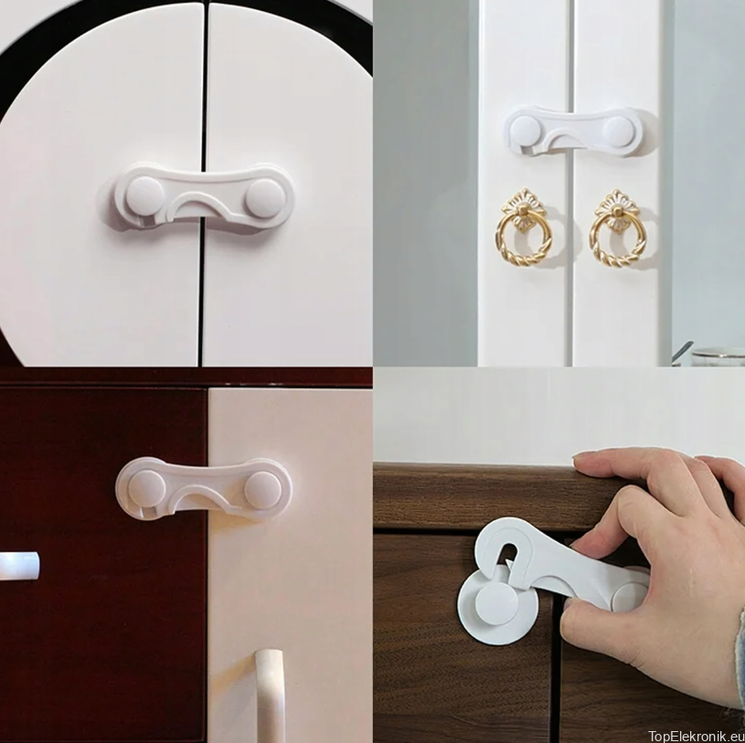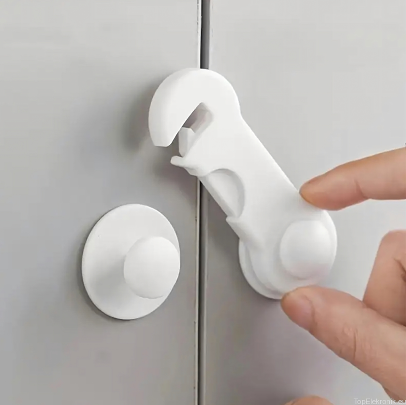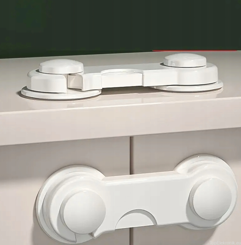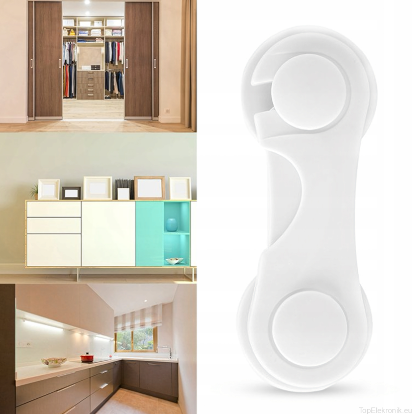 ✔️ Prosty montaż – wystarczy zdjąć folię zabezpieczającą i przykleić blokadę do szafki