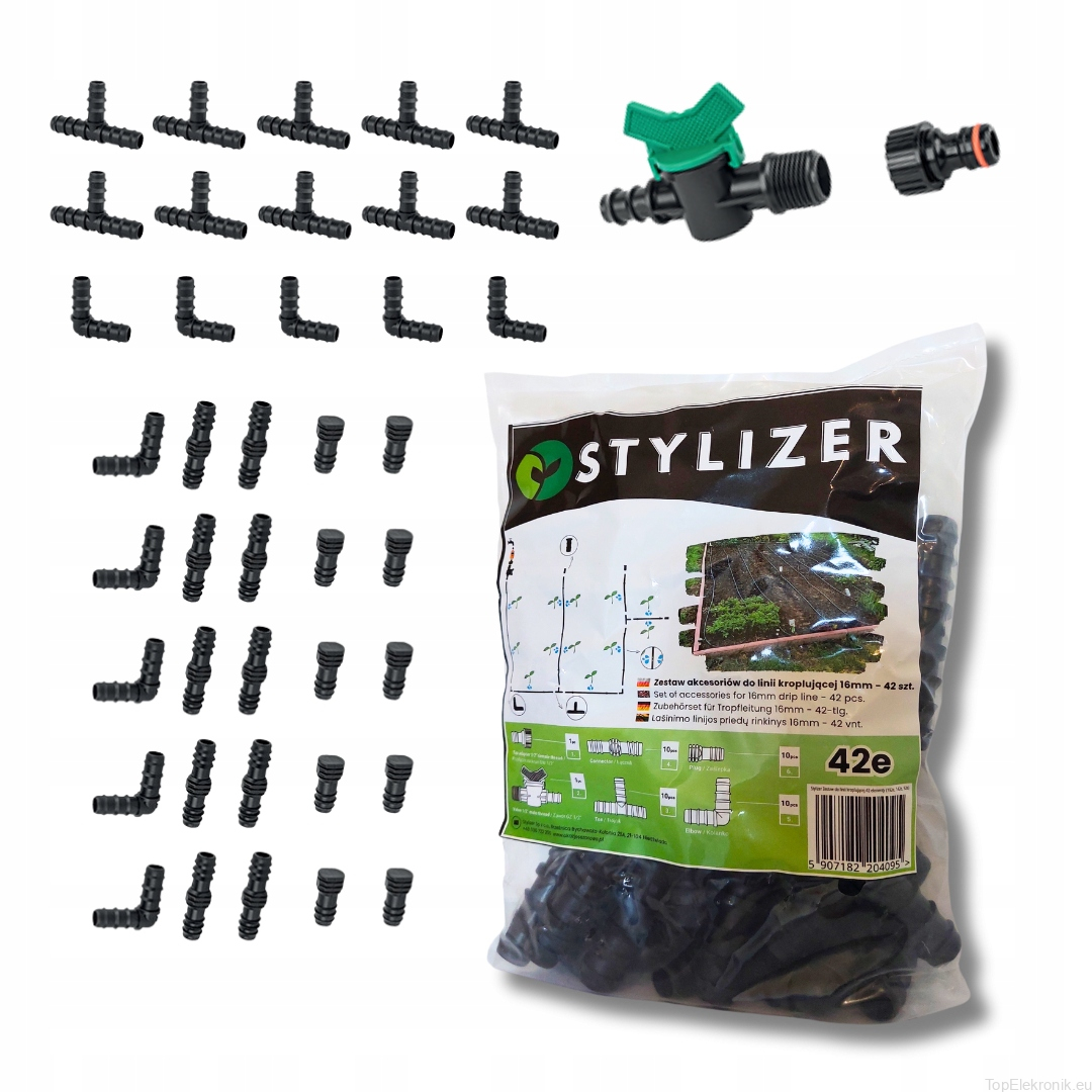 Zestaw zawiera aż 42 elementy, które umożliwiają wszechstronne konfiguracje instalacji.