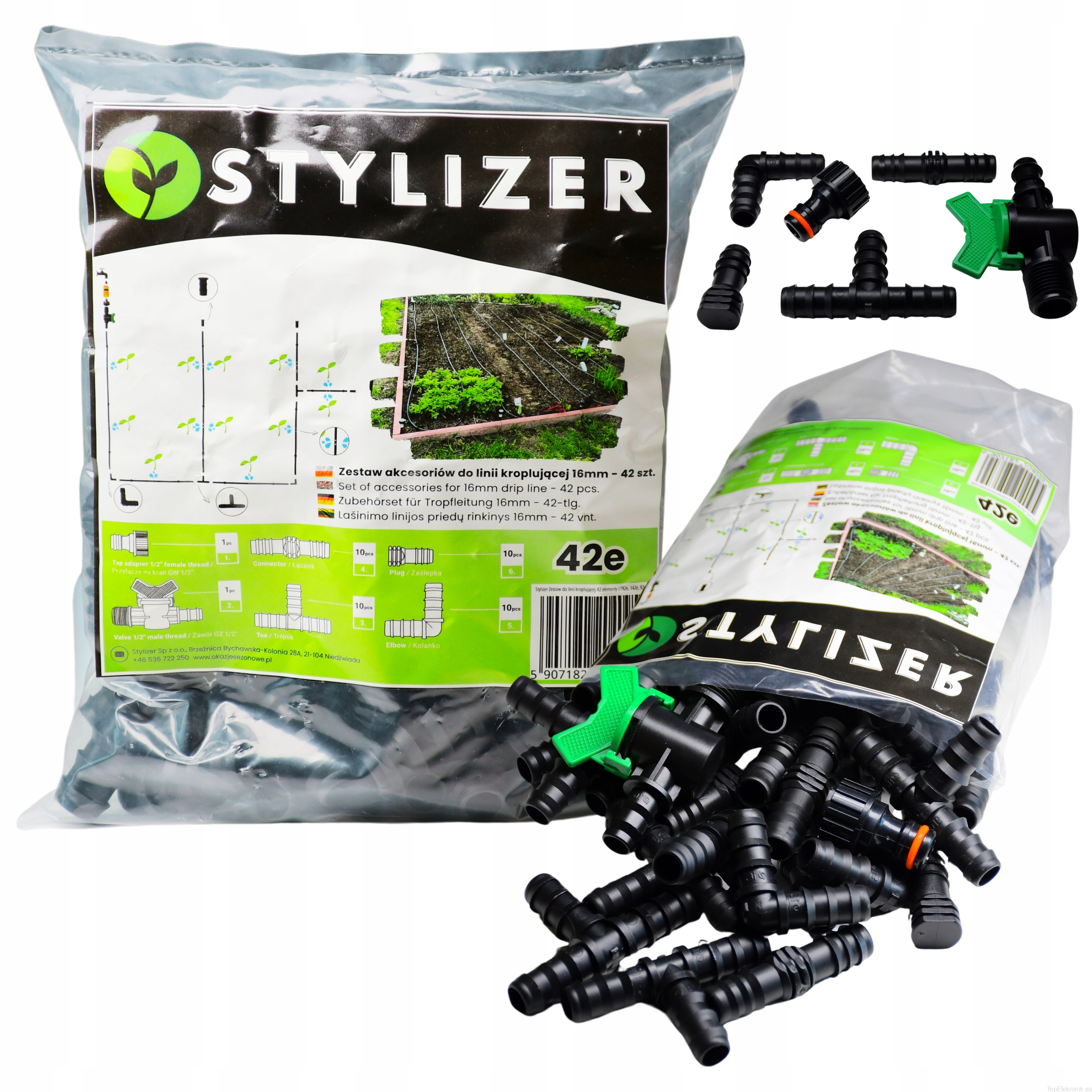 Kompletny zestaw akcesoriów zaprojektowany specjalnie do linii kroplującej o średnicy 16 mm.