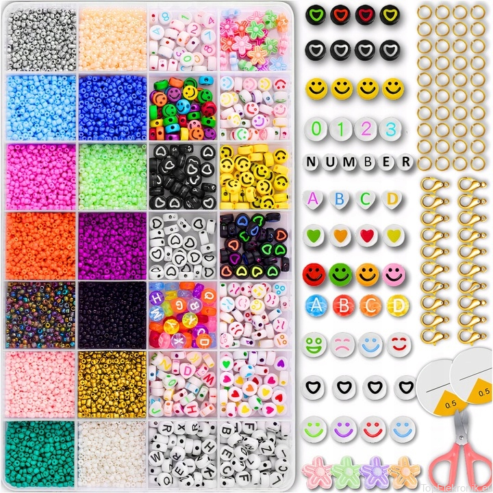 Zestaw do tworzenia biżuterii z koralików jest idealny do wszelkiego rodzaju biżuterii DIY takiej, jak: