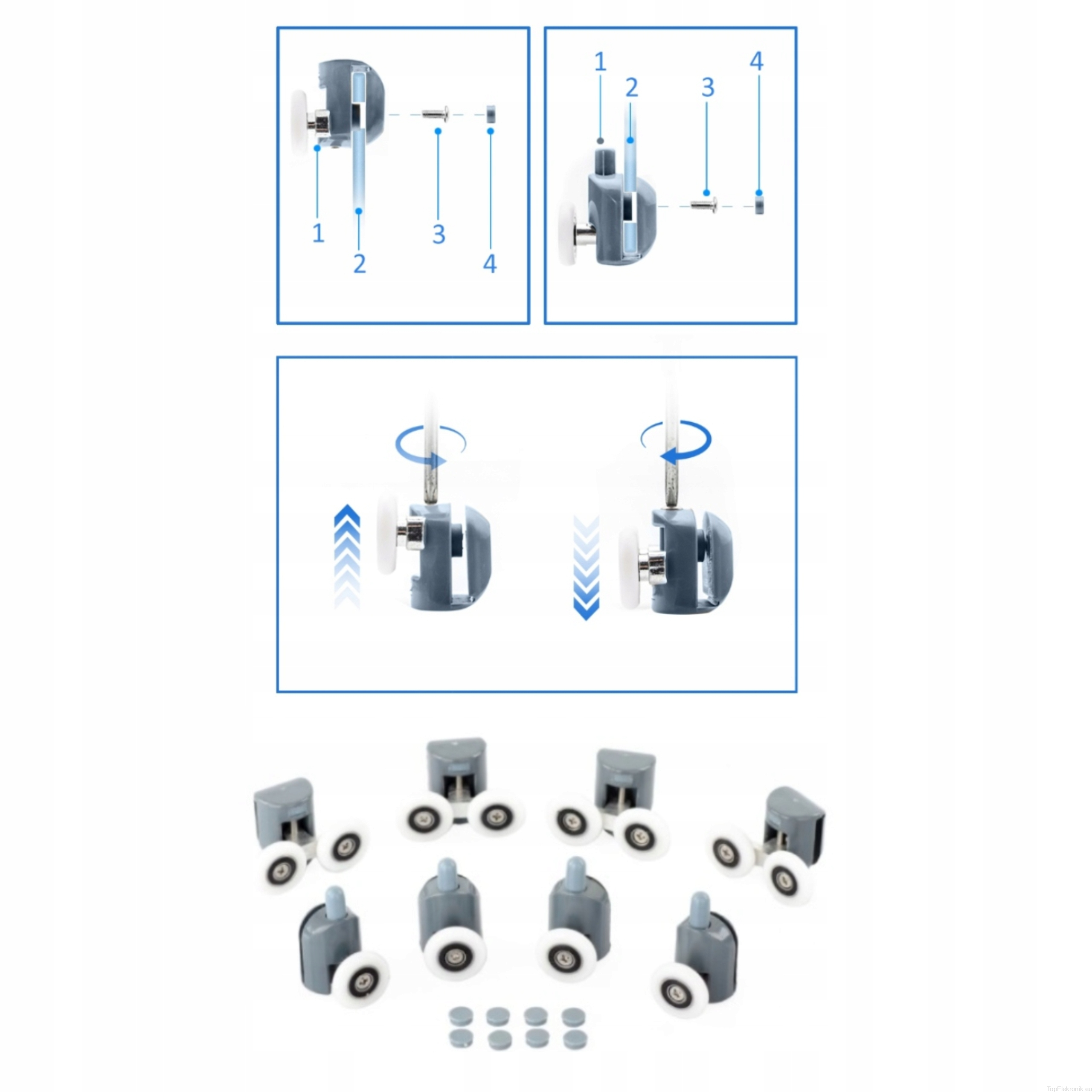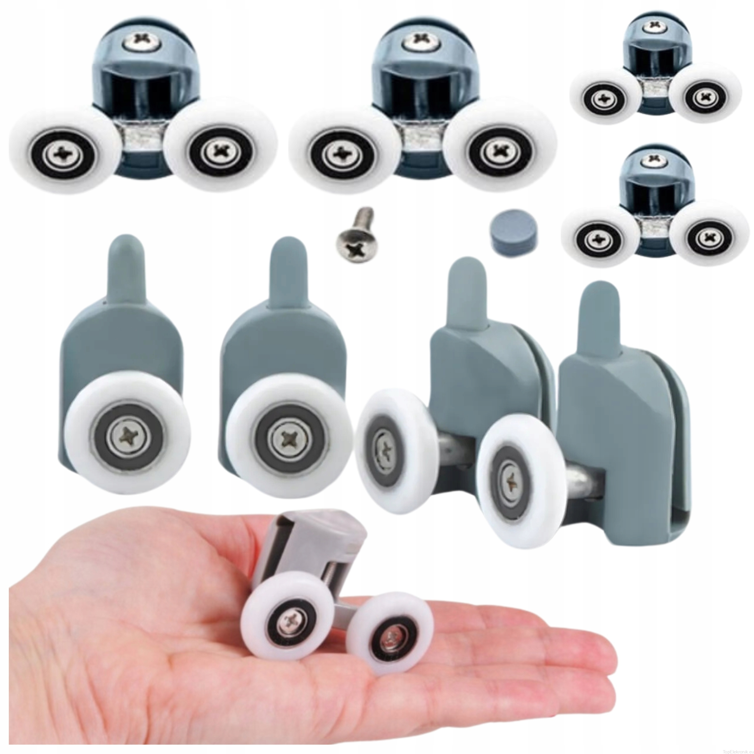 ✅ 8 sztuk w zestawie: 4 rolki górne, 4 dolne.